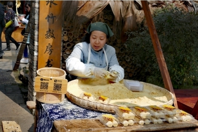 A stall owner in Huanglongxi town makes “dragon’s beard candy”, a handmade Chinese treat. (Photo: Zhao Jianwei/People’s Daily Online)
