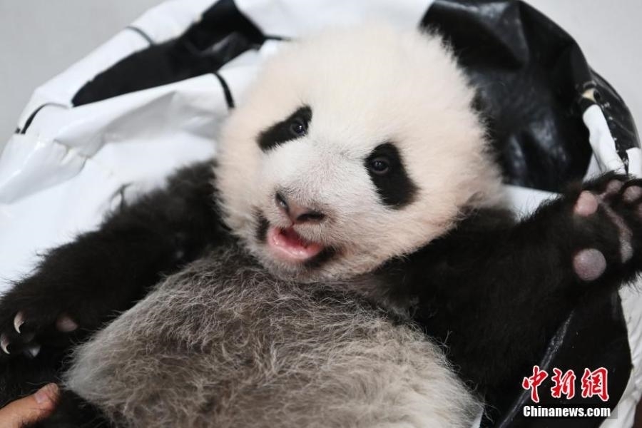 Photo taken on Oct. 20, 2021 shows a panda cub at Shenshuping base of China Conservation and Research Center for the Giant Panda, Wolong National Nature Reserve, Sichuan Province. (Photo: China News Service/An Yuan)