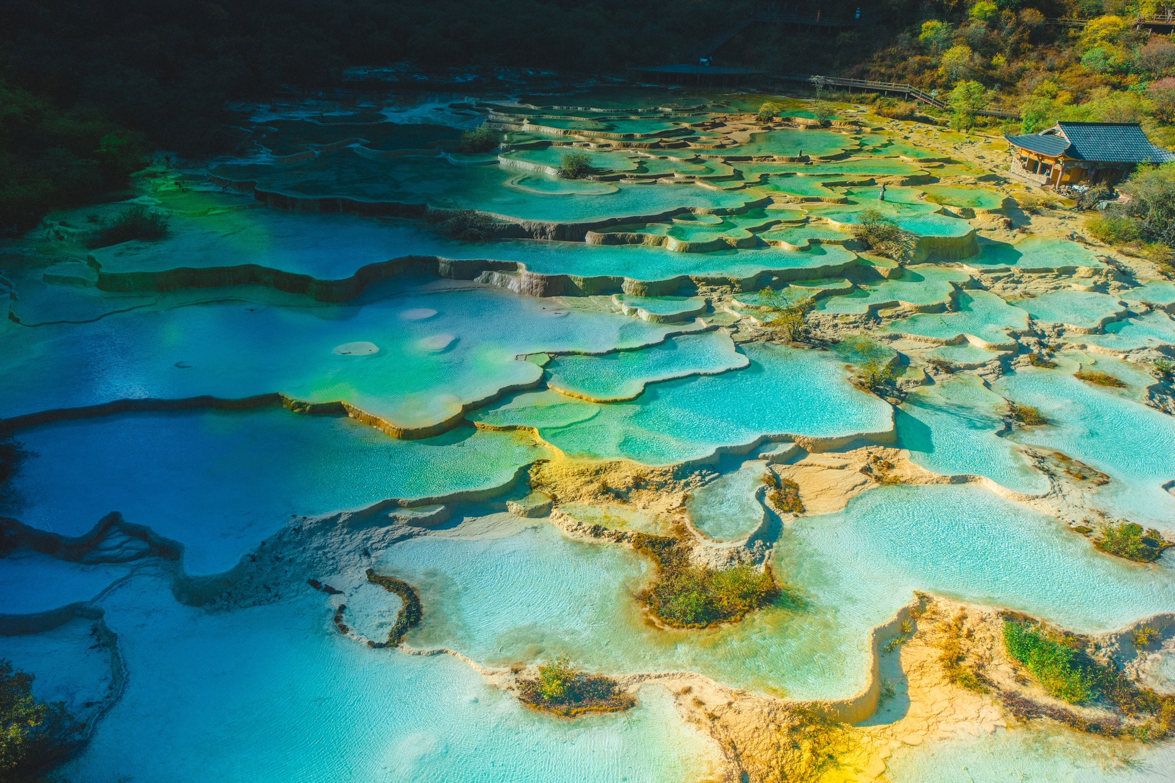 Autumn view of Huanglong and its terraced pools in SW China
