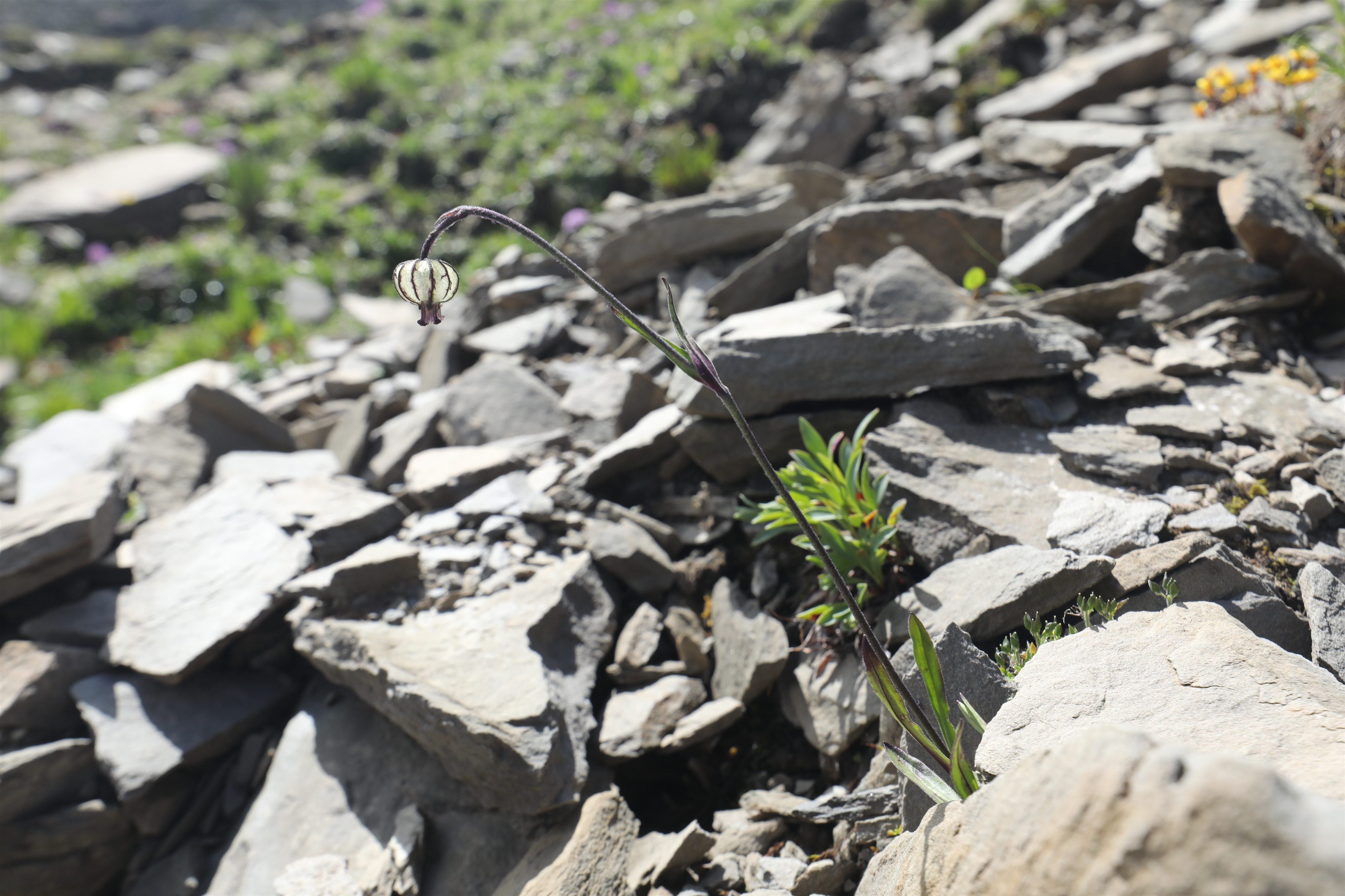 Silene gonosperma, distributed in Central Asia and China, grows at altitudes from 1,600 to 4,400 meters above sea level, usually in alpine meadows. The plant can survive in a harsh environment. In Mount Siguniang or Mount Four Sisters, located in southwest China's Sichuan Province, groups of silene gonosperma grow on the rocks, bringing liveliness and loveliness to the area.