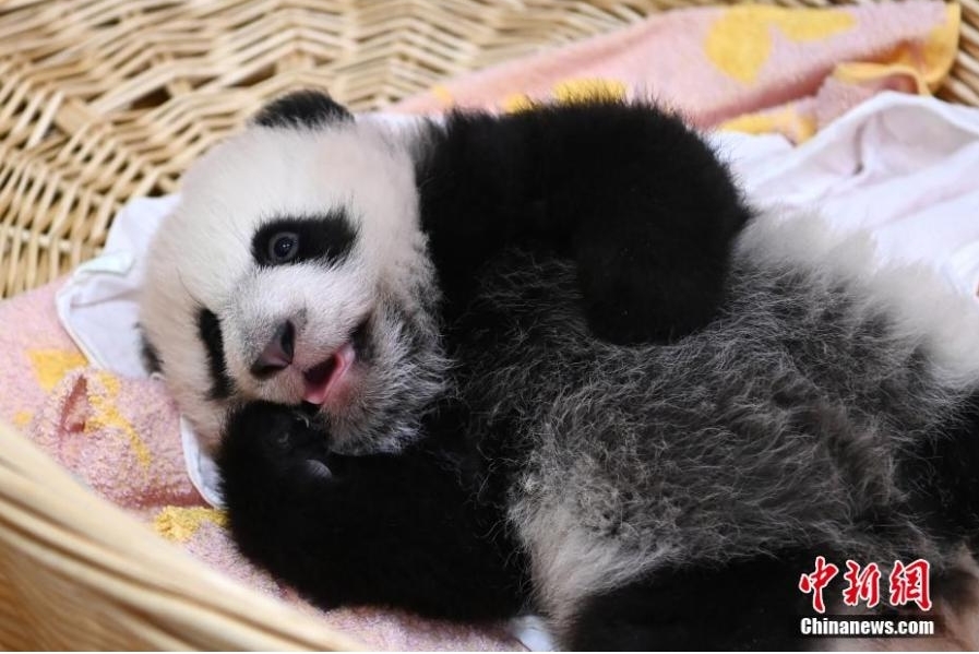Photo taken on Oct. 20, 2021 shows two panda cubs at Shenshuping base of China Conservation and Research Center for the Giant Panda, Wolong National Nature Reserve, Sichuan Province. (Photo: China News Service/An Yuan)