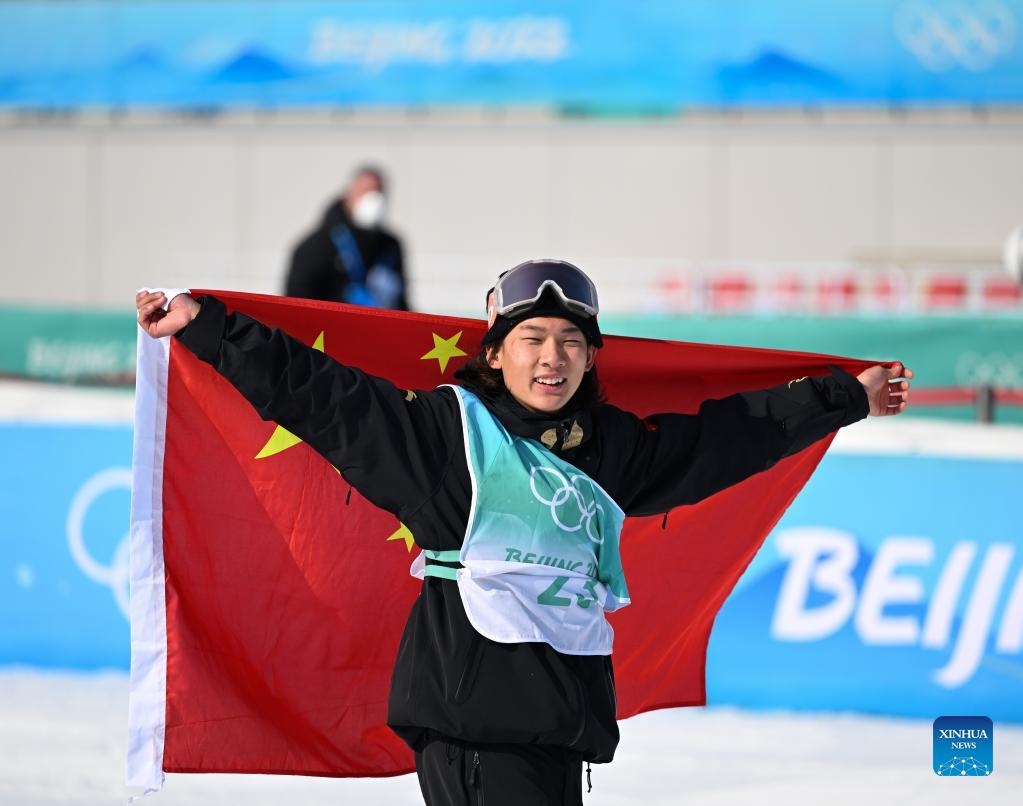 BEIJING, Feb. 15 (Xinhua) -- China's Su Yiming claimed a historic gold medal in the Beijing 2022 men's snowboard big air with a combined score of 182.50 points at Big Air Shougang on Tuesday.