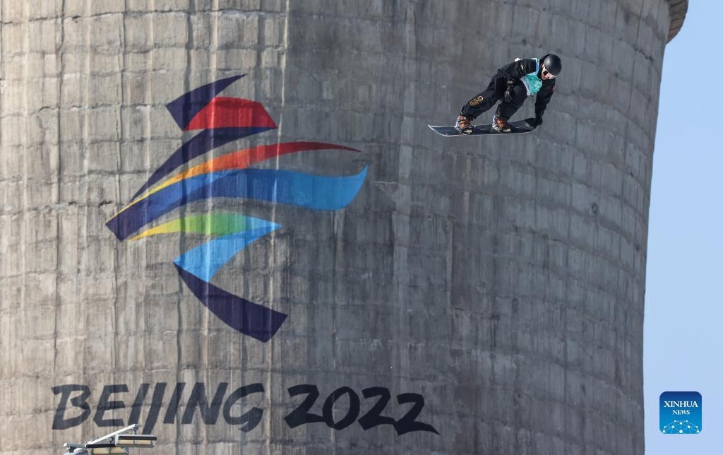 Su Yiming of China competes during men's snowboard big air final of Beijing 2022 Winter Olympics at Big Air Shougang in Beijing, capital of China, Feb. 15, 2022. (Xinhua/Yang Lei)