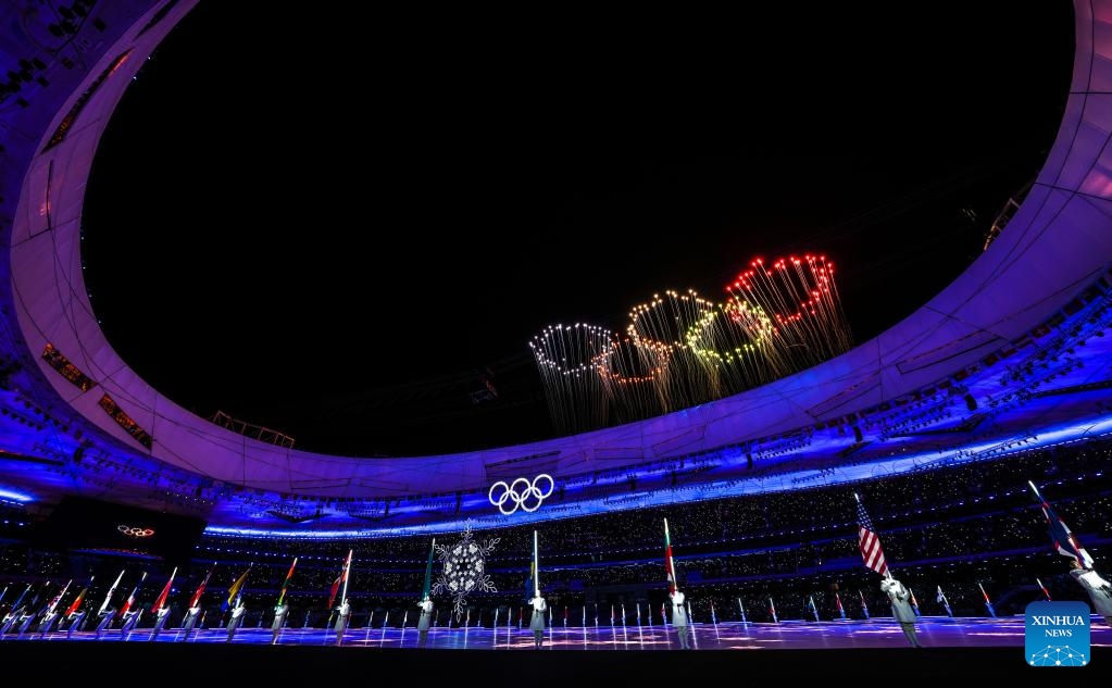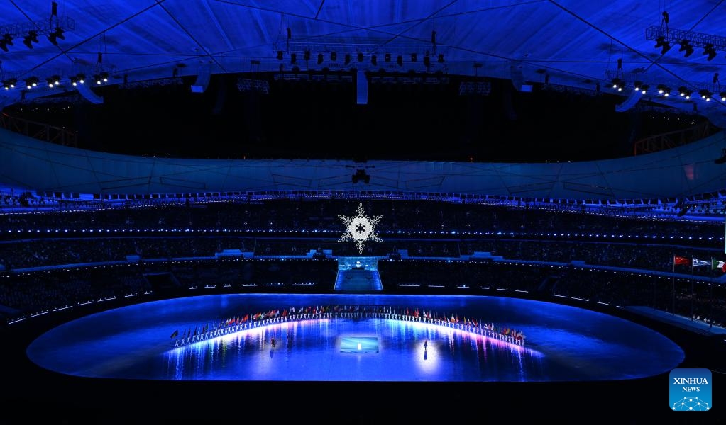 Athletes parade during the closing ceremony of the Beijing 2022 Olympic Winter Games at the National Stadium in Beijing, capital of China, Feb. 20, 2022. (Xinhua/Huang Zongzhi)