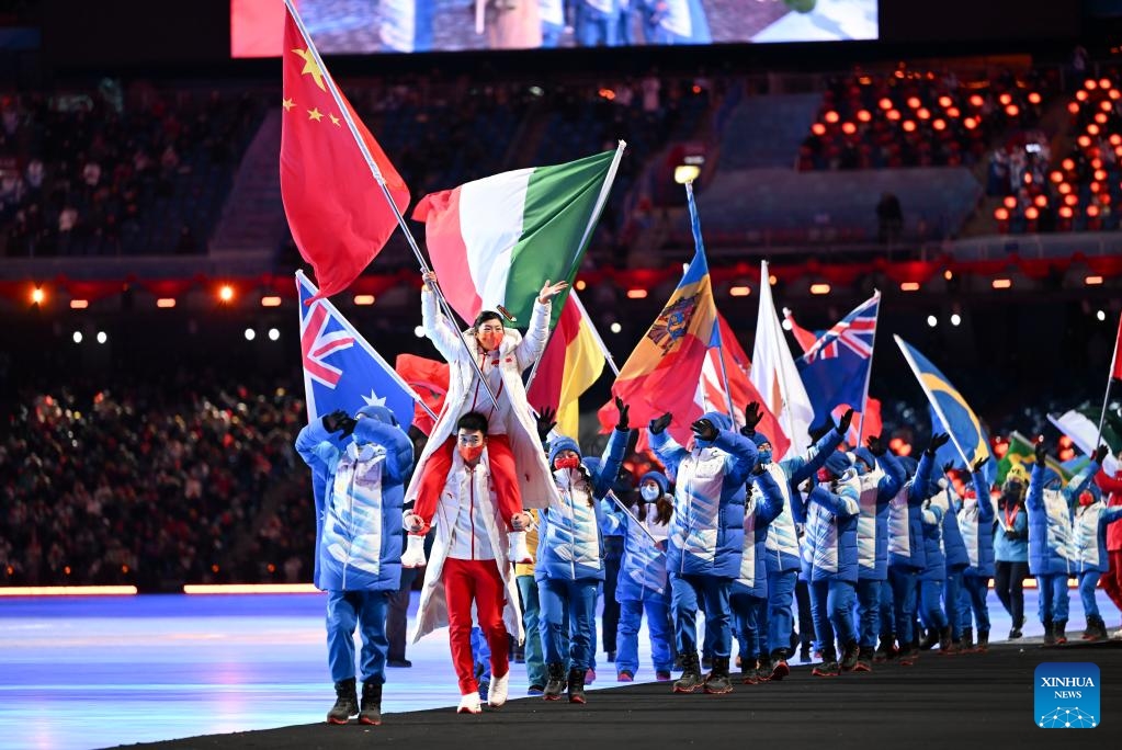 Athletes parade during the closing ceremony of the Beijing 2022 Olympic Winter Games at the National Stadium in Beijing, capital of China, Feb. 20, 2022. (Xinhua/Ding Xu)