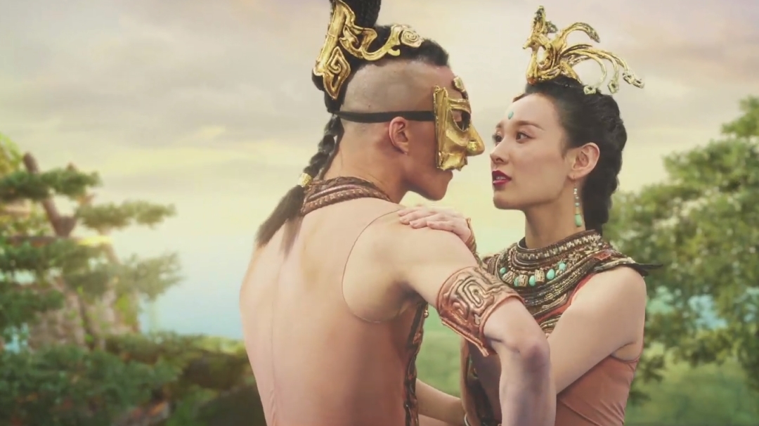 青铜立人手里到底拿的是象牙,是权杖,还是其他什么东西?朱凤伟和节目组更愿意把青铜立人手里的空白想象成是青铜大立人环抱心爱的女孩的姿势,由此产生了这段穿越时空的创意舞蹈。