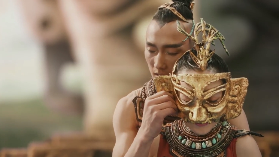 Famous dancer Yang Liping created the show Jinmian. When she brought the model of bronze standing feature to Zhu to inspire him, she exclaimed, "You are so similar to this feature!" But it wasn't until he walked in front of the 2.6-meter-high bronze standing feature in Sanxingdui Museum in Guanghan, Sichuan province, that Zhu was deeply touched by the ancient civilization, "I was so shocked. I felt lucky to be able to pass on the charm of ancient culture to people."
