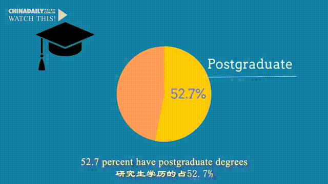 从文化程度来看,研究生学历的占52.7%,大学学历的占36%。