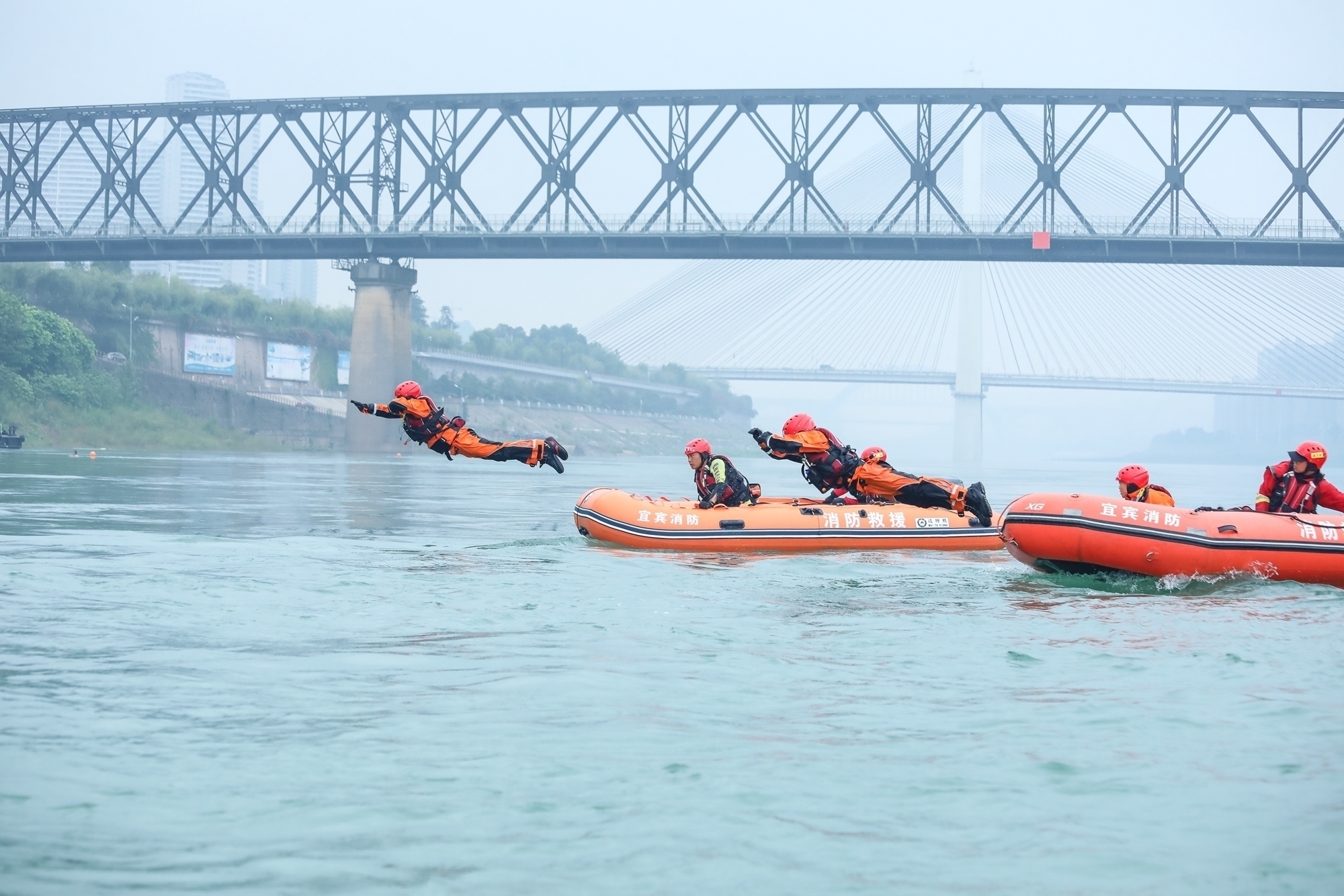 The firefighters were having a comprehensive water-rescuing training in Jinsha River, Yibin City, Sichuan Province.