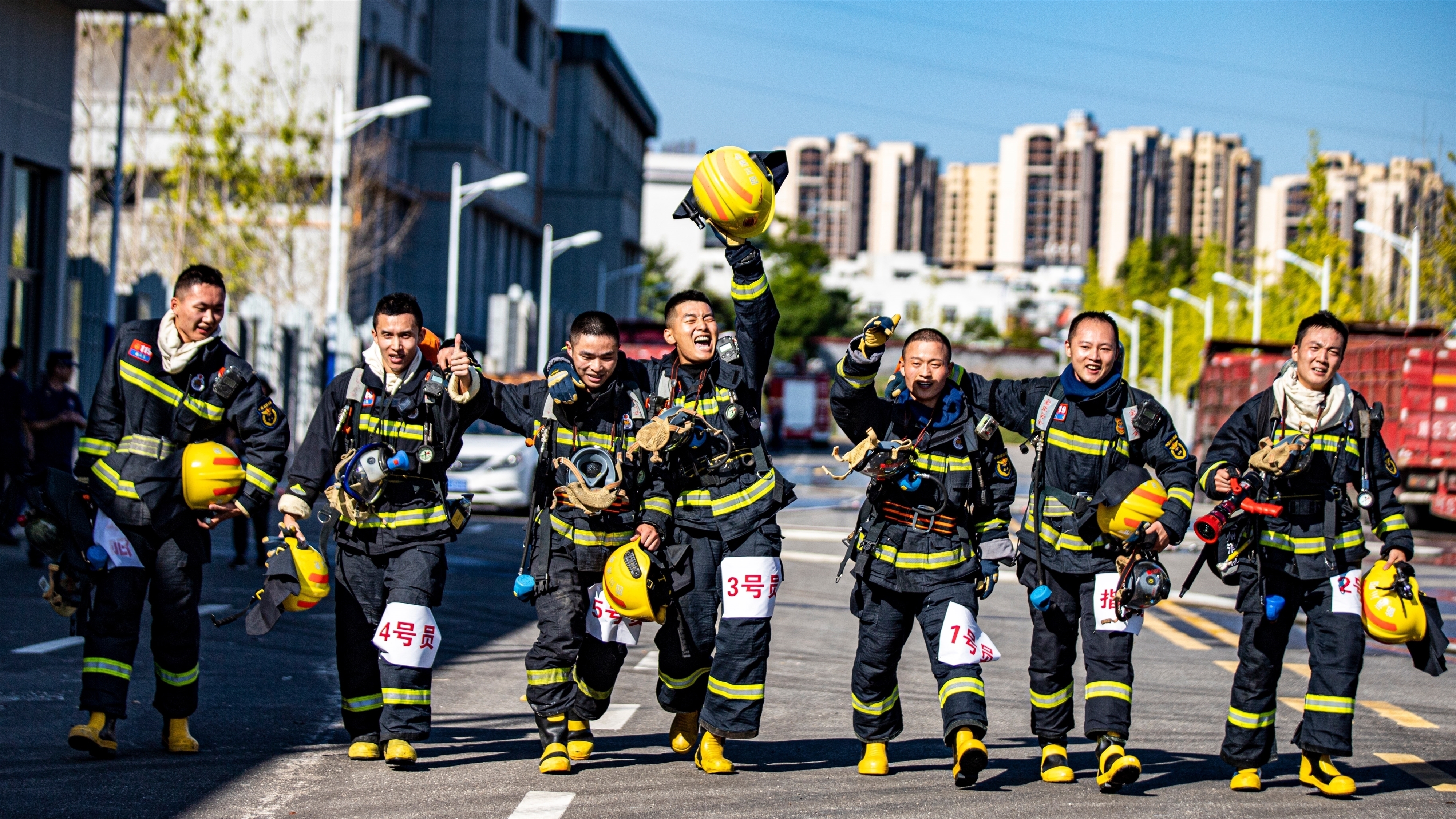The firefighters in Dazhou City, Sichuan Province were having a competition. They are both opponents and teammates.