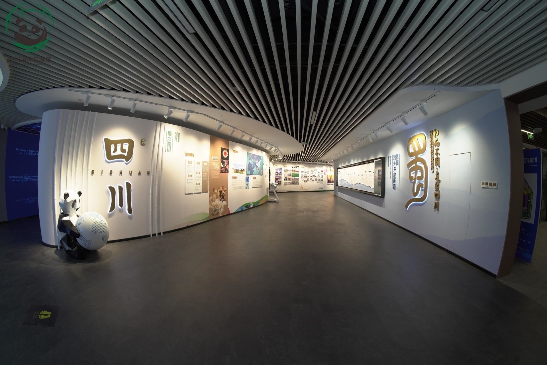 Sichuan International Friendship Cities contains two parts: the functional area, which is mainly used for meeting foreign guests and holding related activities respectively, and the exhibition area, which is composed of five parts: the Preface, Sichuan Chapter, Chapter of Hong Kong and Macao, Chapter of Friendship Cities and the Closing Chapter, in a zigzag pattern, showing the "borderless exchange" of international friendships in this limited space.