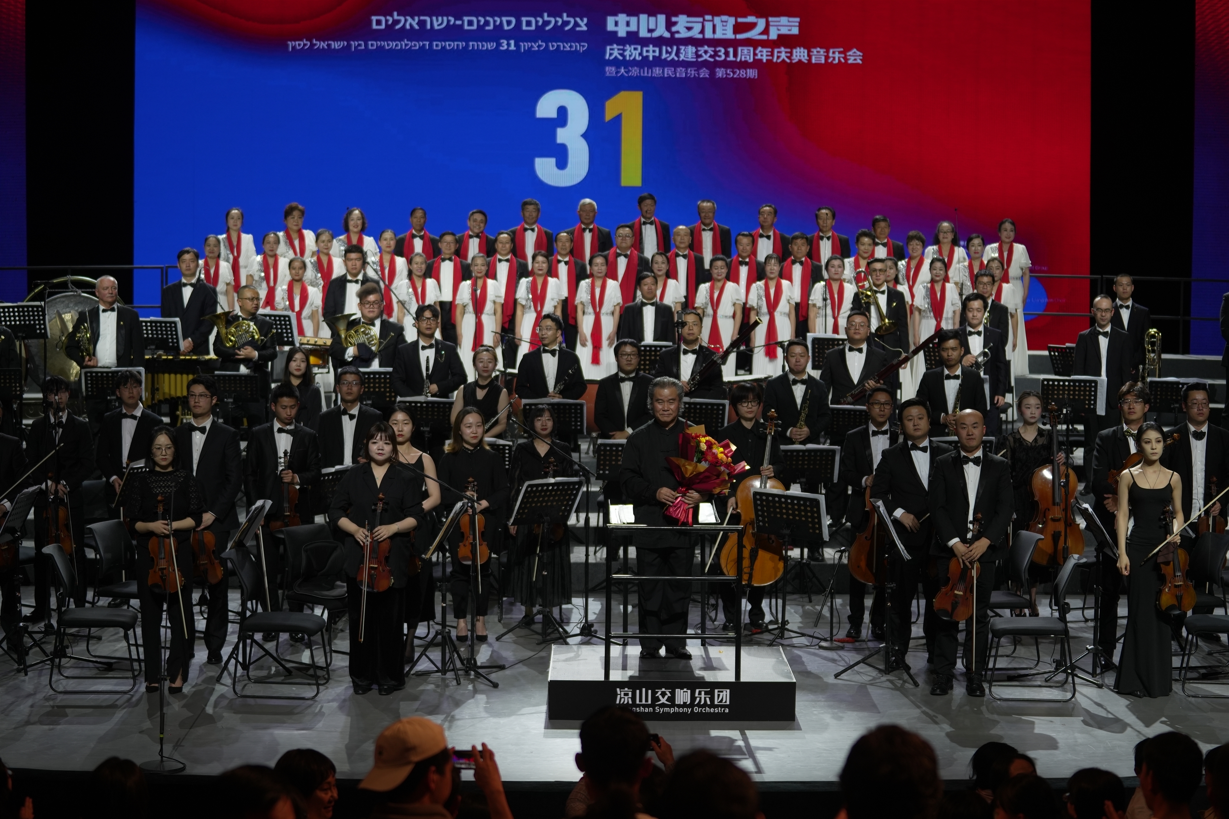 At the concert, the Liangshan Symphony Orchestra led by Tang Qingshi, the national first-class conductor and musical director, the Wucai Liangshan Choir and performers from Israel jointly delivered peaceful and friendly performances, which invite the audience to experience the colorful and splendid Chinese culture and enjoy the aesthetics of the brilliant Israeli art and music, and further deepen the friendly relationship between people of both sides.