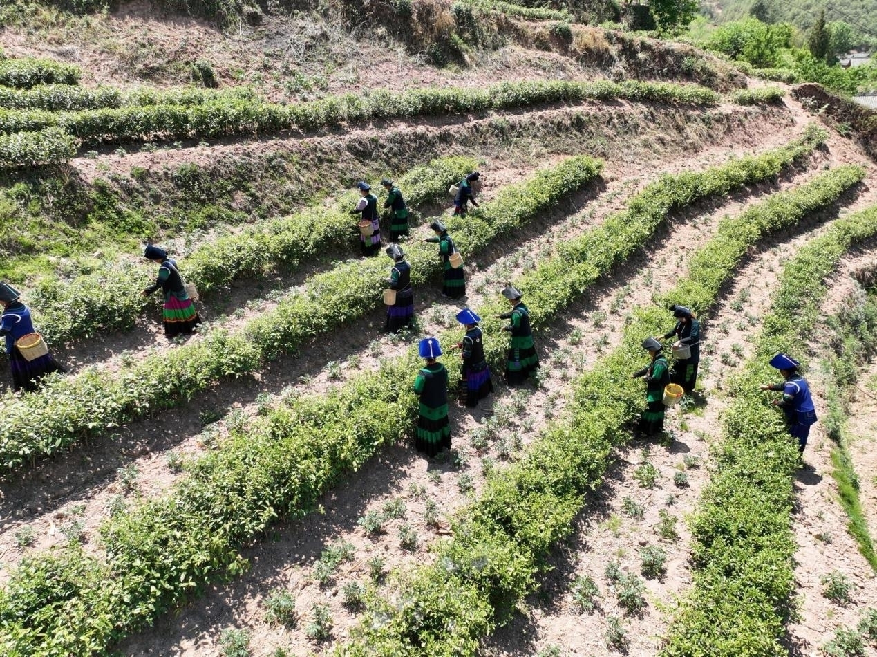 The village of Qietuo is filled with the scent of tea, and Yi women are busy picking tea