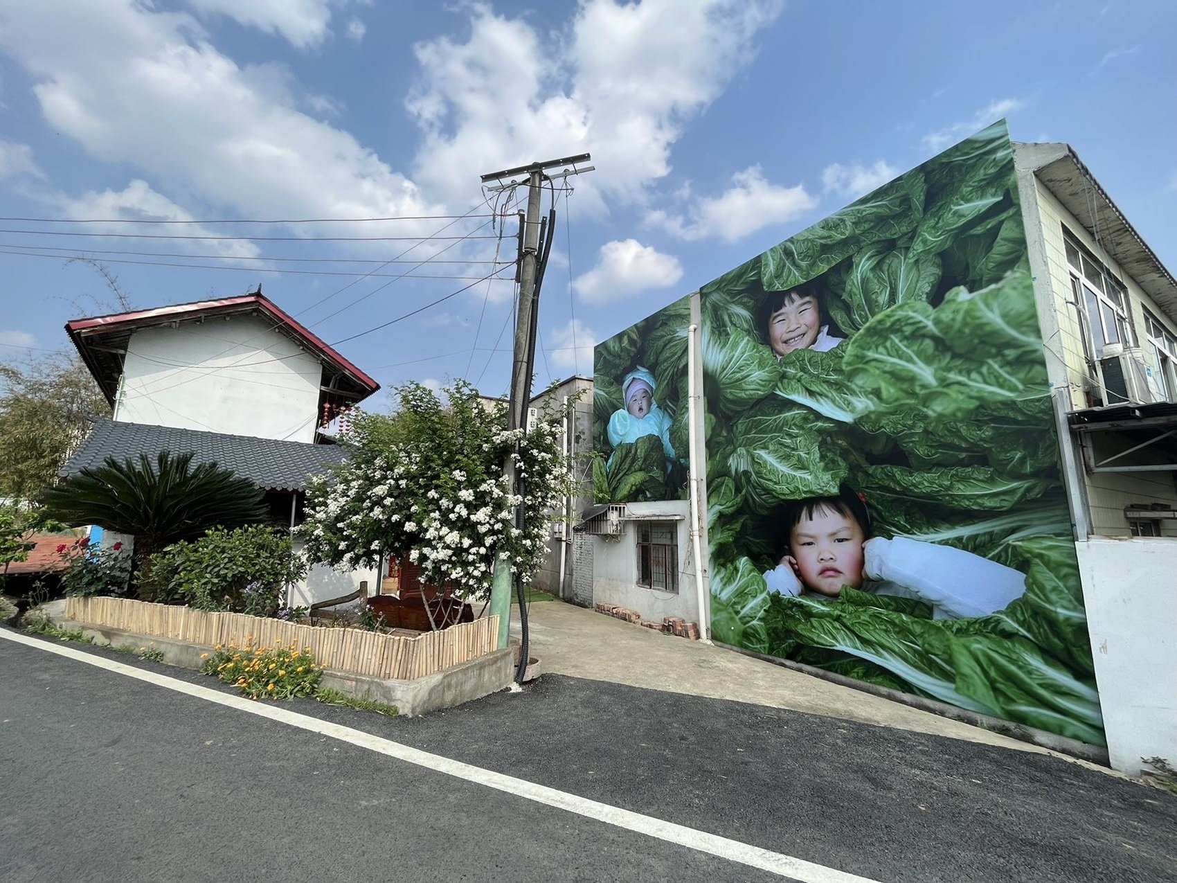 除了利用这些年积累的影像素材,毛晓初还从村民手中搜集了一些老照片,放大后展示在村里合适的场所;她还拍摄了周边几乎所有孩子的笑脸,将工作室对面农房的墙壁刷成蓝绿两色……