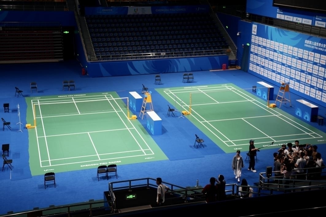 "The badminton centreis made up of 3 venues, namely the competition venue, the group preliminaries venueand the warm-up venue, all of which are designed and remodeled in accordance with the standards of the (International University Sports Federation." Yu Jian, from Organising Committee, introduced.