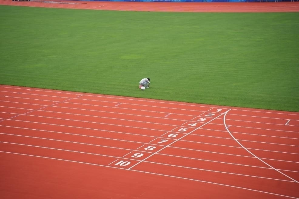 When the reporter came to Tanghu Middle School athletic field, workers are maintaining the field's turf, which will soon be used as a throwing warm-up area for track and field events.