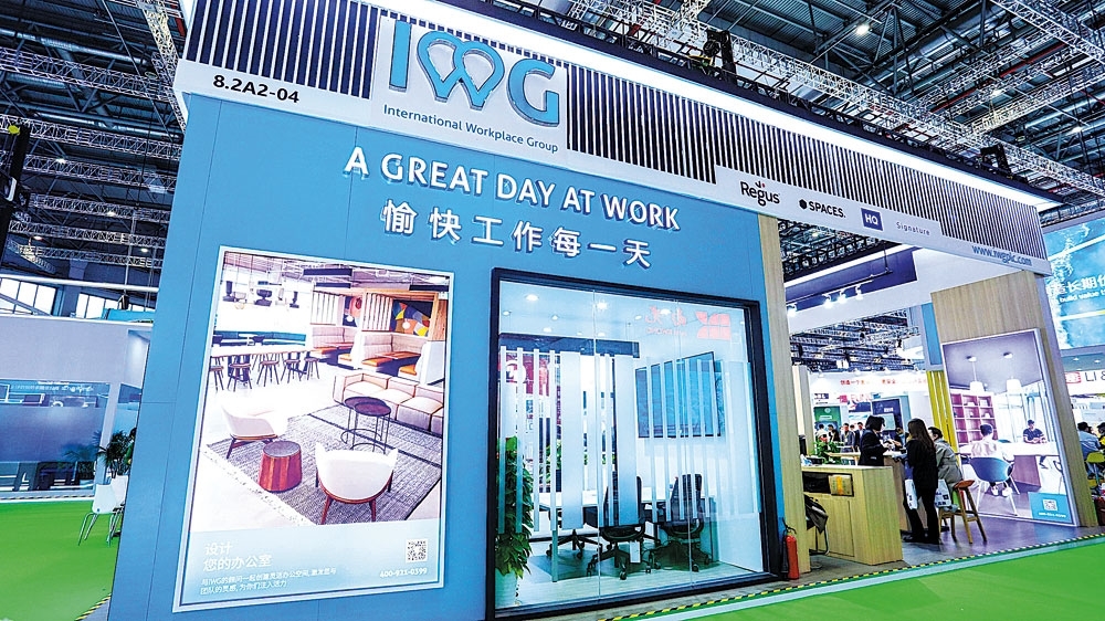 The booth of International Workplace Group at the recent fourth China International Import Expo in Shanghai. CHINA DAILY