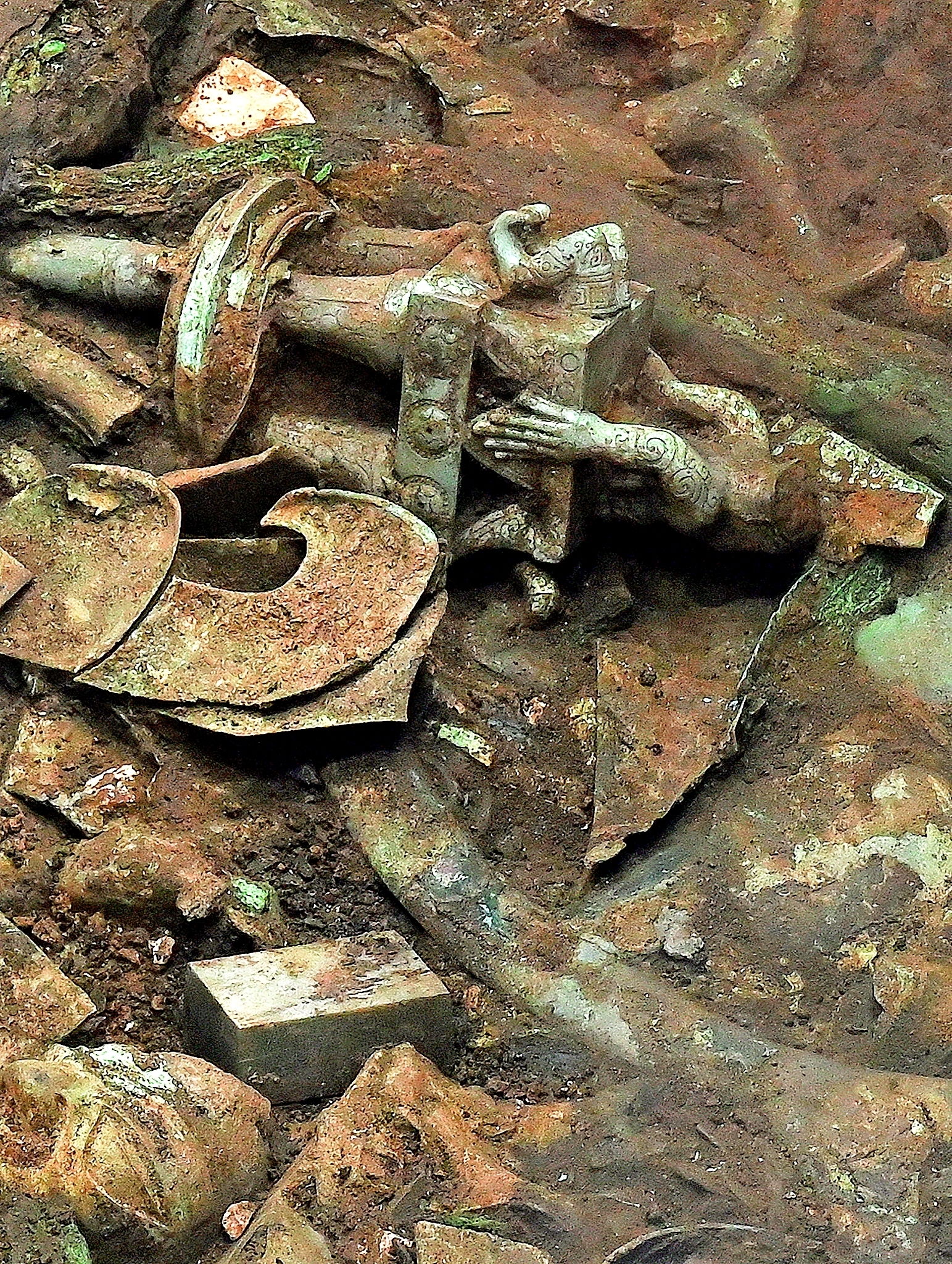 Some very rare and important large bronze vessels were uncovered from the No. 8 sacrificial pit during the recent excavation, among which there are likely to be new national treasures.