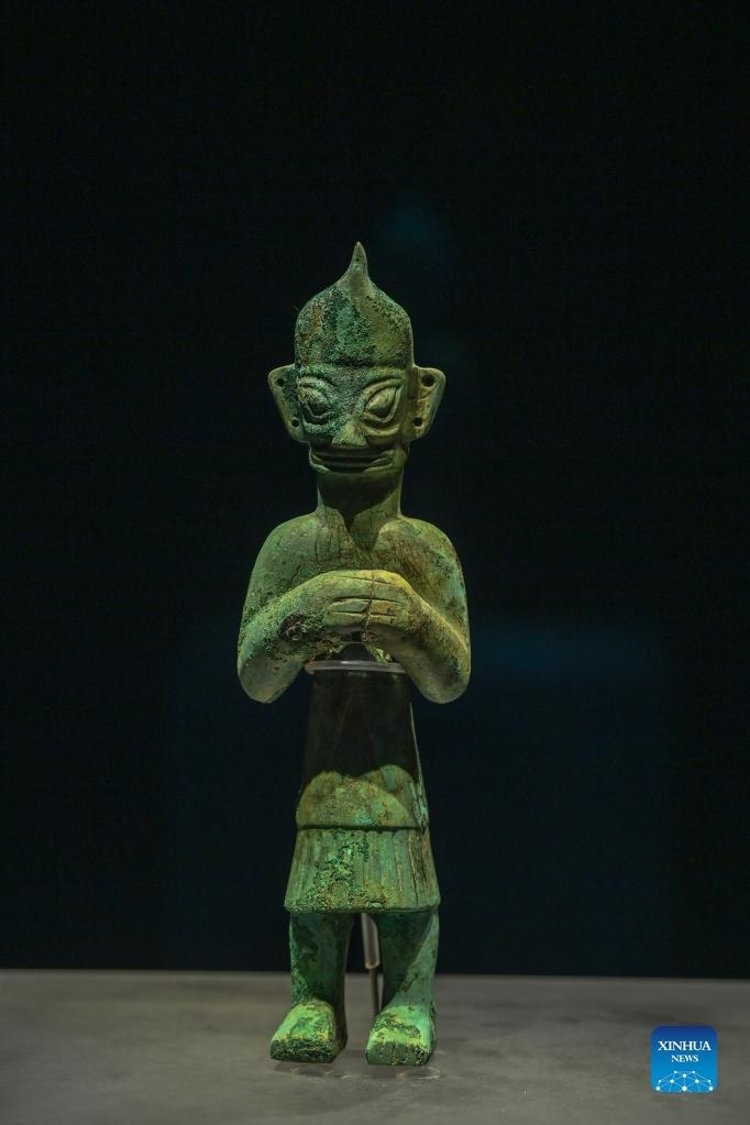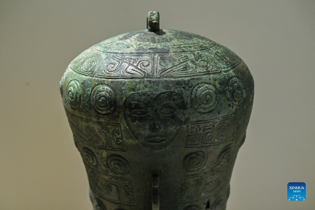 Photo taken on Sept. 28, 2021 shows an exhibit excavated from the Sanxingdui Ruins at an exhibition featuring Bronze Age civilizations along the Yangtze River at Sichuan Museum in Chengdu, southwest China's Sichuan Province. (Xinhua/Xu Bingjie)