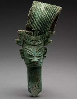 Another bronze relic that has struck the fancy of Chinese netizens is one with a special hairstyle that curls back into an exaggerated form shaped like tiles. Many Chinese netizens commented that the hairdo reminded them of the crown-shaped hat worn by Zhuge Liang, a Chinese statesman and military strategist that lived during the Three Kingdoms period (220-280). Chinese experts speculate that the relics' head was once connected to other bronze components.
