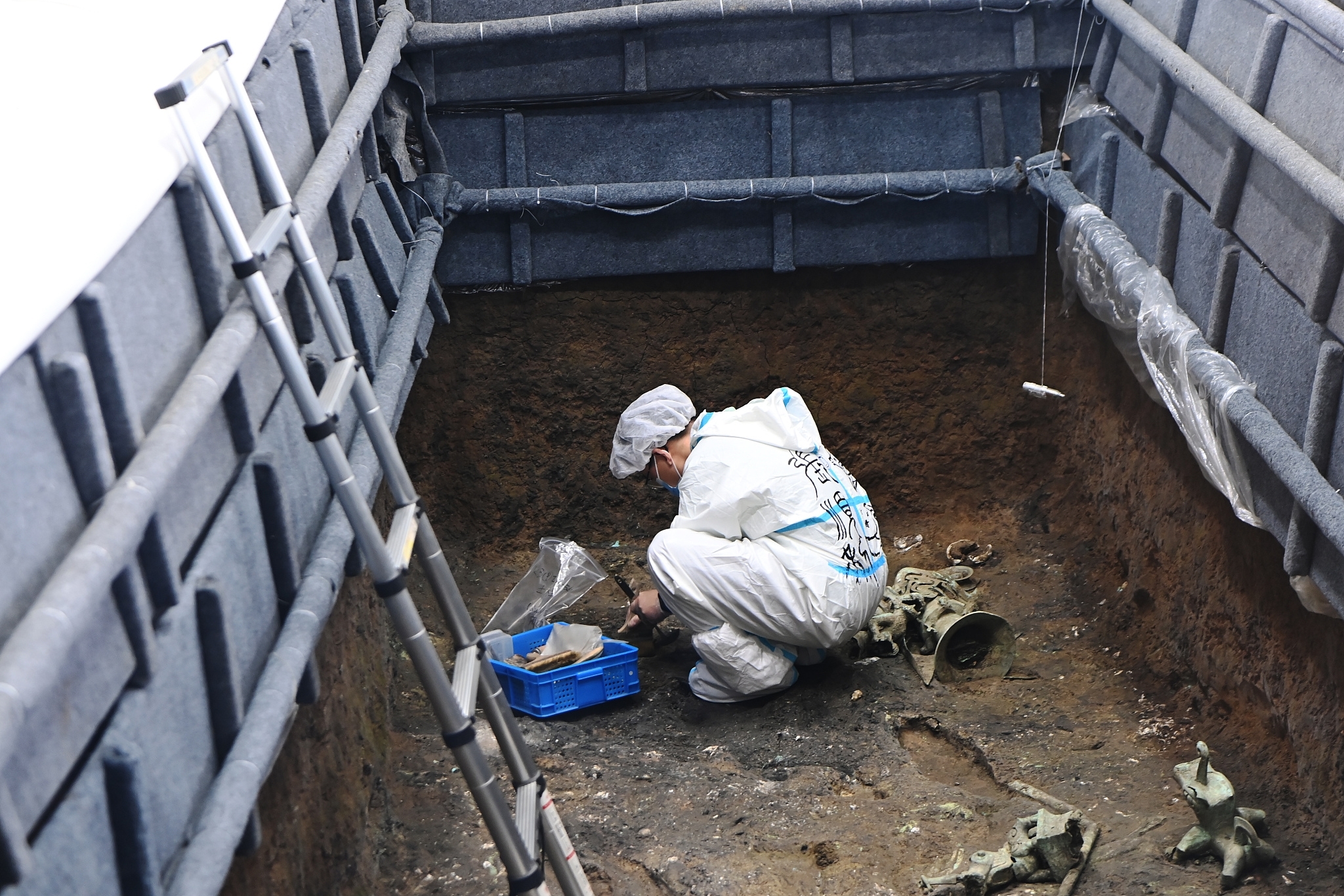 An archaeologist works at the Sanxingdui Ruins site in southwest China's Sichuan Province, September 9, 2021. /CFP