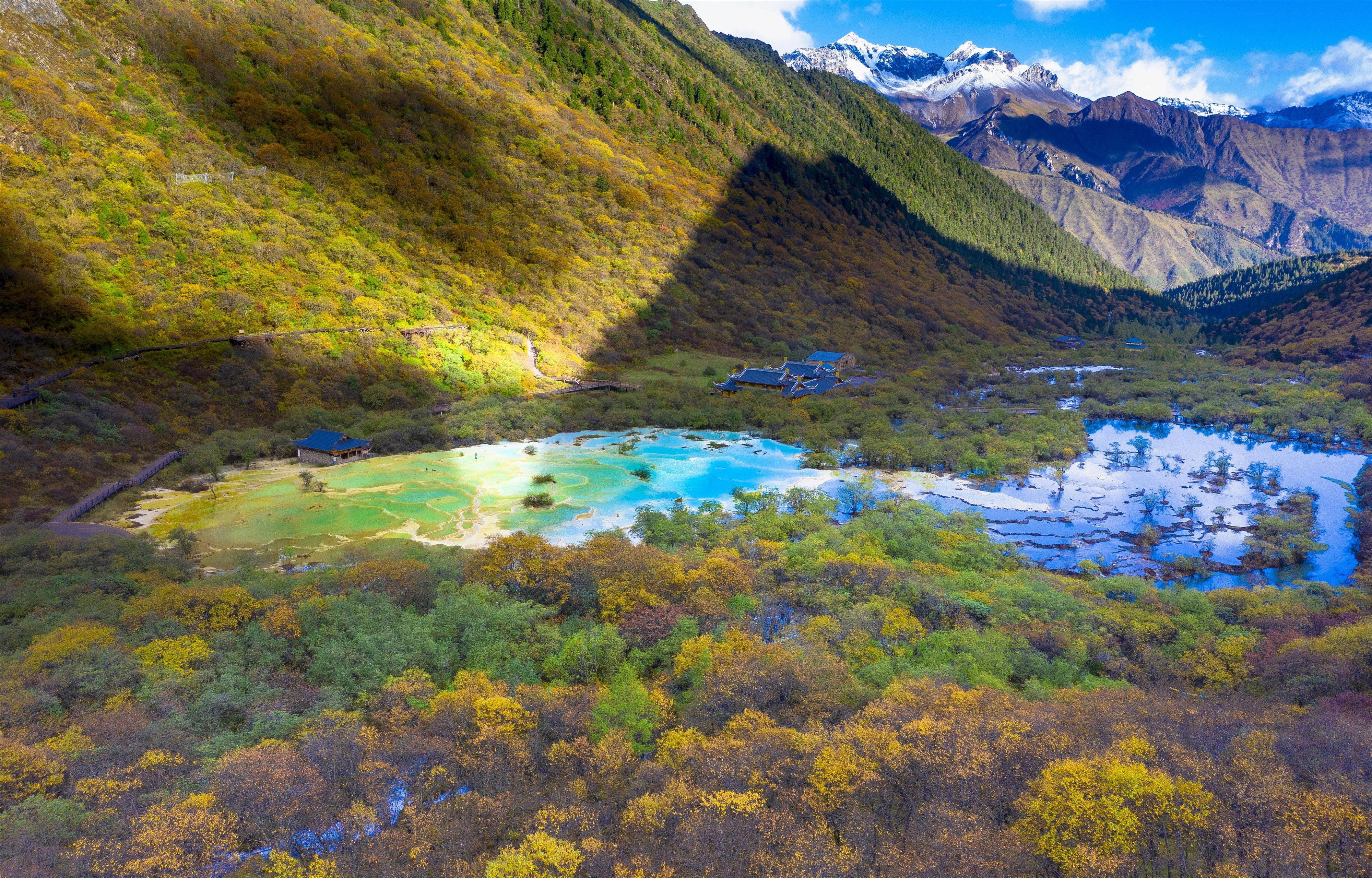Autumn view of Huanglong and its terraced pools in SW China