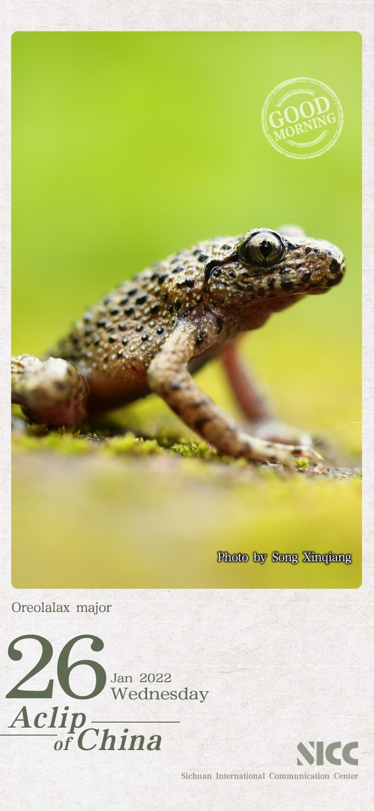 "Atoad wants to eat swan meat" is aChinese metaphor for not having self-awareness and asking for beautiful things that one does not deserve. Some animals are born with natural beauty, but unfortunately, toads are not one of them.But the Oreolalax is not self-loathing, always drumming a pair of big bright eyes as if wearing a pair of "pupils" and shouting out to the world: The love of beauty is universal, and we toads are no exception.