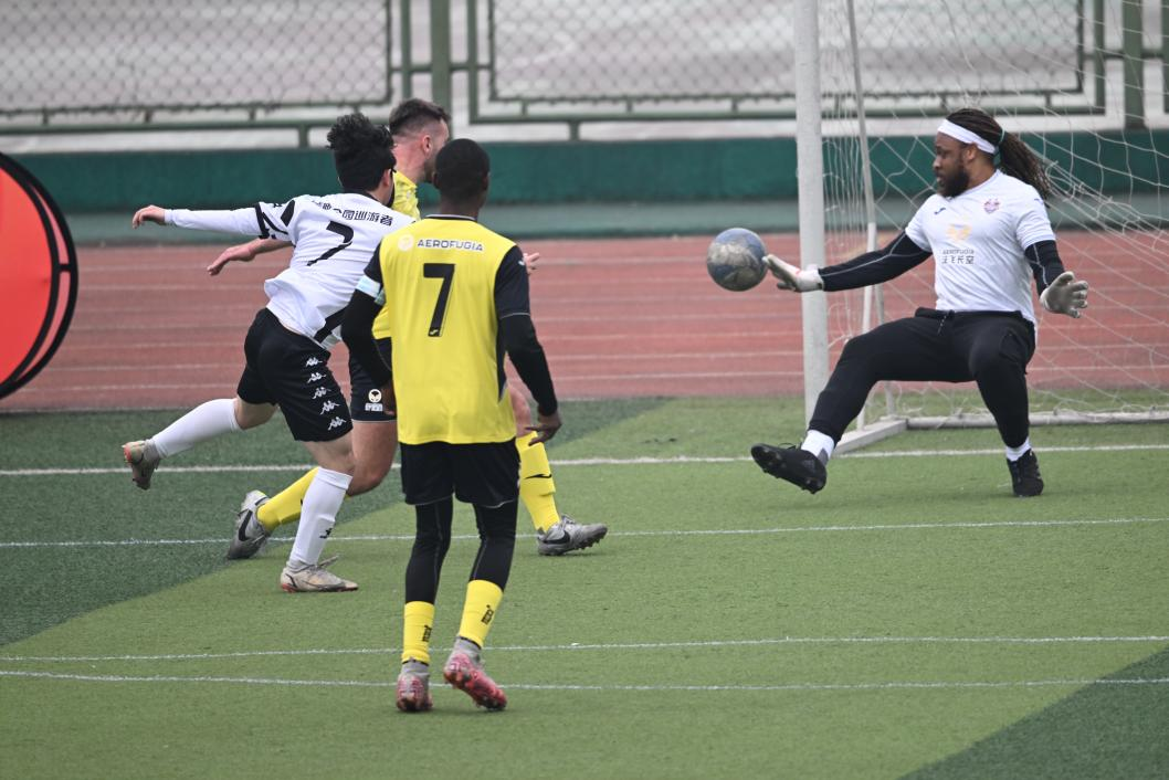 The SCGFC goalkeeper thwarted the attack of the Tianyu Football Team.