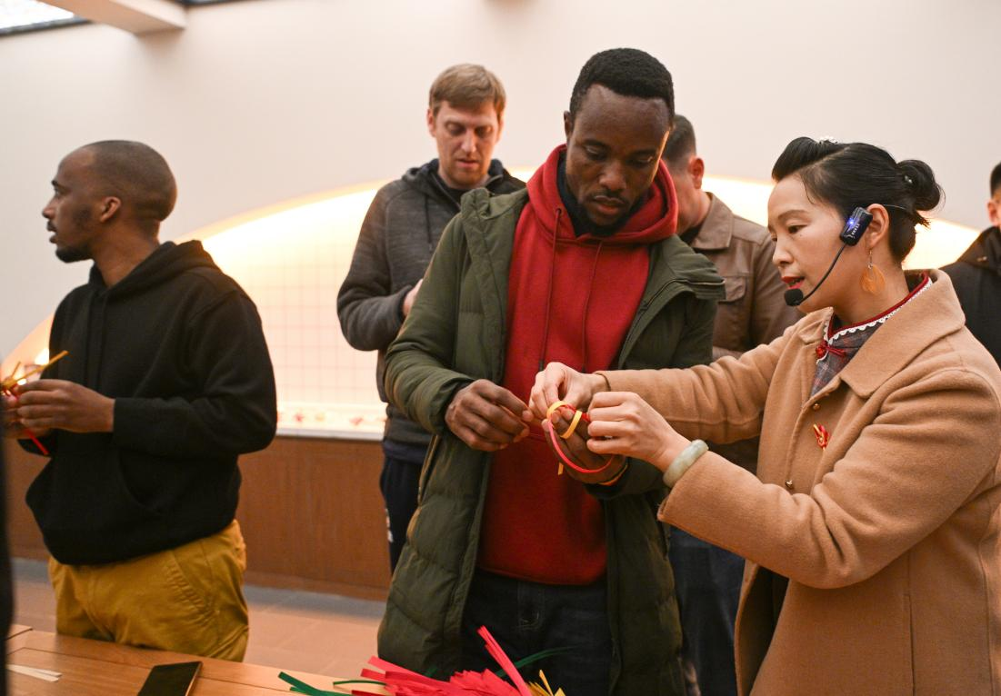 Foreign players experienced the intangible cultural heritage of bamboo weaving in Yucheng District.