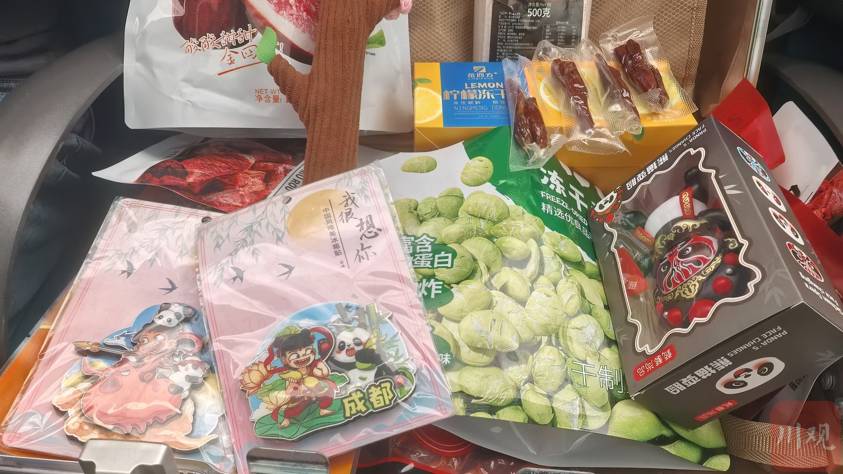 Around 12:30 p.m., the second-floor waiting hall at Chengdu East Railway Station was bustling with passengers carrying large and small packages of "homecoming gifts". After several requests to open their suitcases were politely declined, a couple from Henan Province, Shen Xueshan and Qu Huijuan, finally agreed to unpack their luggage on site, revealing an array of Sichuan specialty products: refrigerator magnets featuring a fusion of Nezha and giant panda motifs, freeze-dried lemon slices, tea, hotpot base seasoning, and more—each item brimming with affection for relatives back home. Both are agricultural scientists at the Sichuan Academy of Agricultural Sciences, specializing in high-yield and efficient cultivation techniques for potatoes and sweet potatoes. They have lived and worked in Chengdu for 16 years and have two sons.