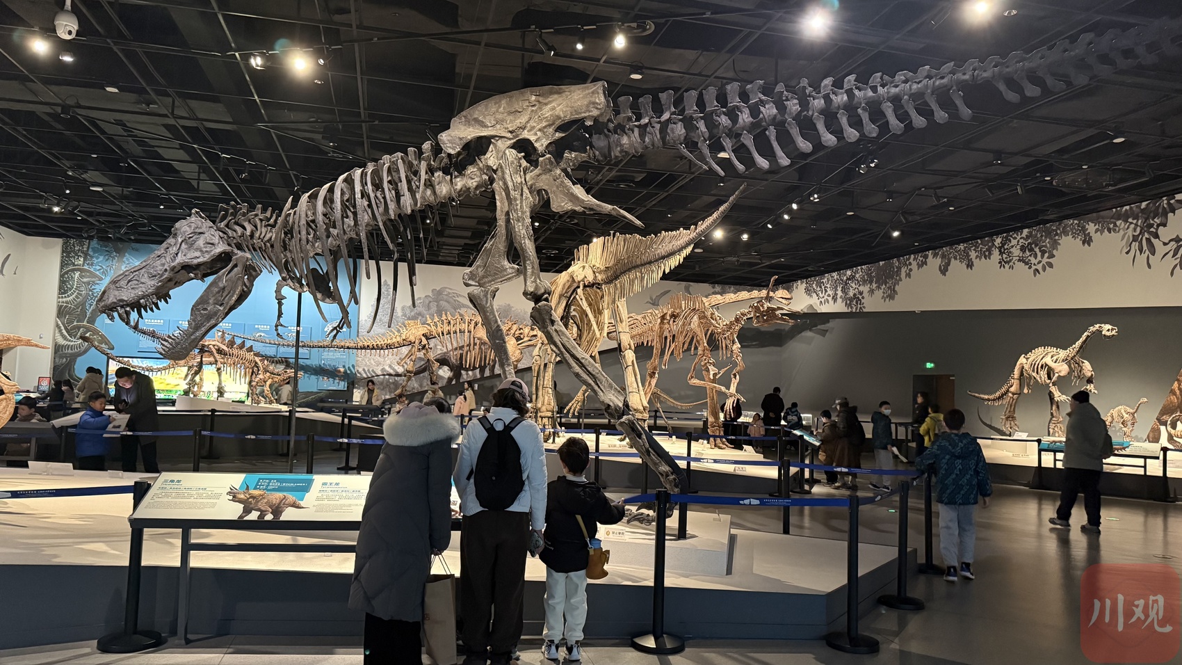 Children and parents are participating in the "Dinosaur Treasure Hunt" activity at the Museum of Chengdu University of Technology