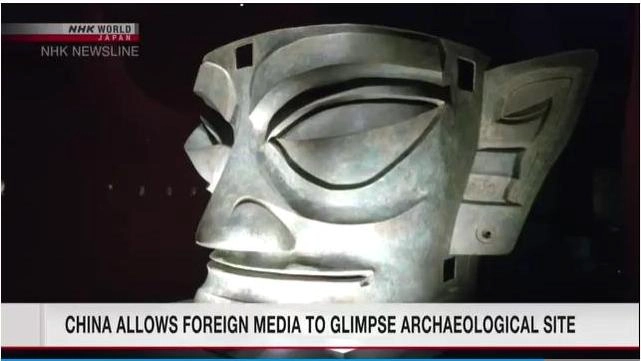 3000年以上前のものとみられる青銅製の巨大な仮面などが出土した中国内陸部の四川省にある、三星堆遺跡の発掘現場がことし秋に調査が終了するのを前に、このほど外国メディアに公開されました。